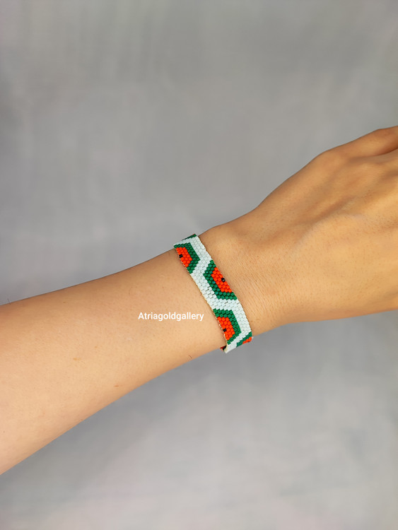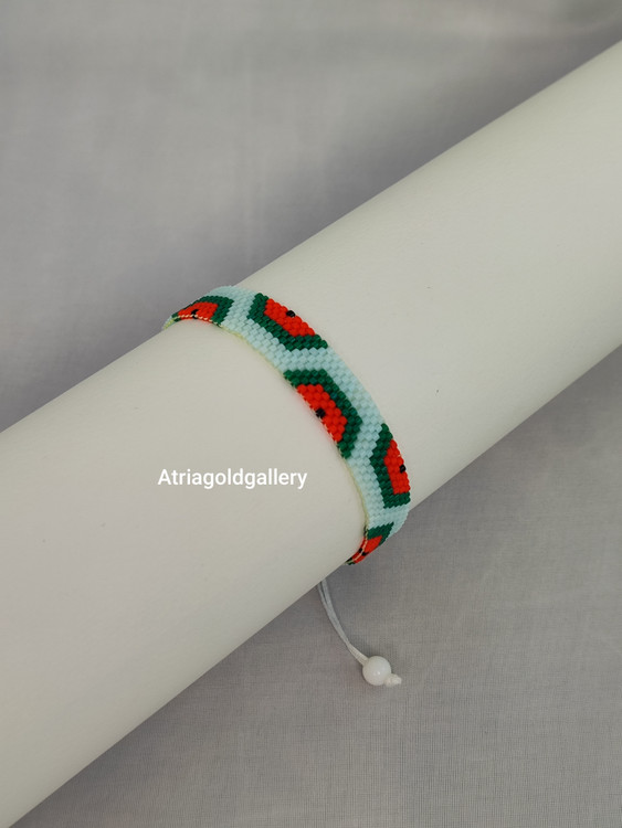 این دستبند میوکی طرح یلدایی هندوانه از منجوق های اصل ژاپنی ساخته شده